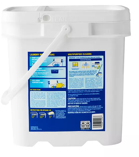 Windfresh Laundry Detergent Powder is super concentrated and great for commercial laundromat use, home laundry needs and multipurpose cleaning. This jumbo-sized 35-pound bucket yields up to 215 loads of laundry, for effortless ongoing use. The fresh, clean scent infuses clothing and eliminates lingering odors. See packaging for instructions regarding laundry, tough stains, opening lid and general cleaning.